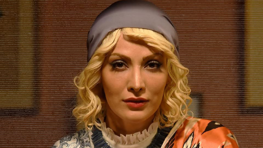 این استایل با اضافه شدن یک کلاه کروشه خاکیرنگ جلوهای کاملتر پیدا کرده است. این کلاه روی موهای صاف و بلوند ریحانه قرار گرفته و ظاهری همزمان مدرن و طبیعی به او بخشیده است. ترکیب رنگ سبز لباس با تناژ خاکی کلاه، هماهنگی زیبا و چشمنوازی ایجاد کرده که کاملاً با فضای سنتی و کویری یزد سازگار است.