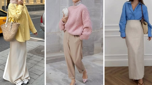 صورتی در کنار بژ، ظاهری لطیف و زنانه ایجاد میکند. این ترکیب تعادل خاصی دارد که از جذابیت و شدت صورتی کاسته و آن را ملایمتر میکند. این هارمونی مناسب برای استایلهای روزانه و شیک بوده و با استفاده از اکسسوریهای ظریف مانند مروارید یا طلایی جلوه بیشتری پیدا میکند.